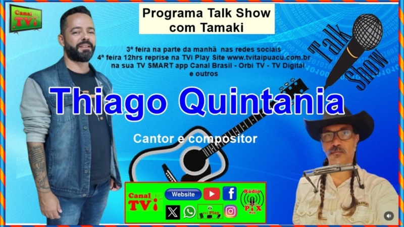 Canal TVi Programa Talk Show com Tamaki entrevistando o cantor e compositor Thiago Quintania
