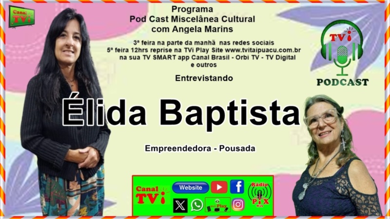 Canal TVi Miscelânea Cultural entrevistando Élida Baptista, Areias Pousadas e Bistrô.