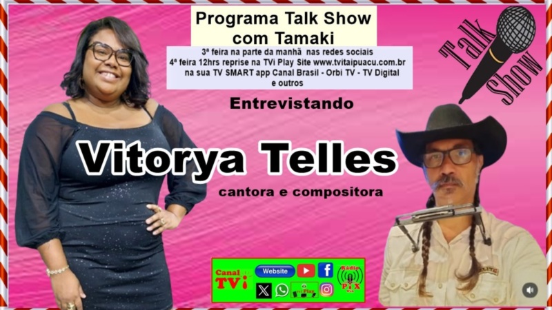 Canal TVi Programa Talk Show: apresentado a cantora e compositora Vitorya Telles.