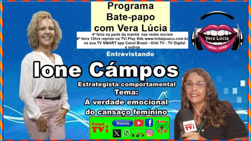 Canal TVi Programa Bate Papo, entrevistando a Ione Campos, estrategista comportamental.